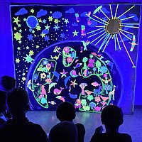 Pfarrei St. Martinus Hattersheim Kinder erlebten "Licht in der Dunkelheit" Kinder B. Siebert Das Schöpfungsbild mit allen gemalten Elementen leuchtet im Schwarzlicht 22.11.2025 Kinder erlebten "Licht