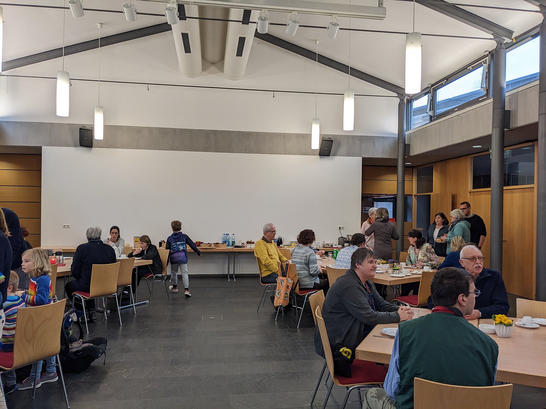 Nur zögerlich füllte sich am vergangenen Sonntag wegen des Regenwetters der gemütliche Frühstückssaal im Gemeindezentrum. Aber nur wenig später, saßen Jung und Alt beisammen und ließen sich ihr Frühstück schmecken. Der Ortsausschuss hat Kaffee, Tee, Brötchen und Eier besorgt. Die übrigen Beläge hat sich jede/r selbst mitgebracht.