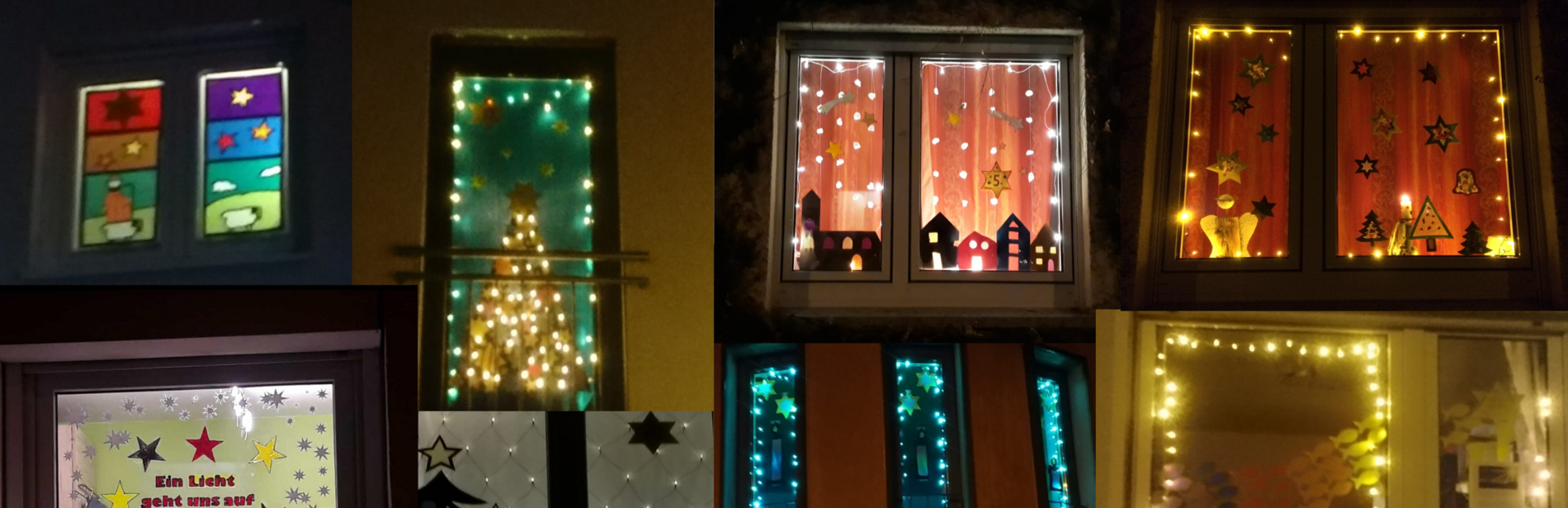 Parallel hierzu suchen wir Fensterschmücker*innen für die Tage Samstag und Sonntag. Die Erfahrung vergangener Jahre hat gezeigt, dass für Viele die Wochenenden im Advent voller Termine sind. Außerdem ist unser Team geschrumpft, so dass wir nicht alle Abende gestalten können.Daher möchten wir die Treffen am Wochenende aussetzen und die unter der Woche dekorierten Fenster mit den Wochenendfenstern ergänzen, so dass man unabhängig von den abendlichen Treffen von Montag bis Freitag, wieder jeden Tag „Von Fenster zu Fenster“ im Advent schlendern kann.