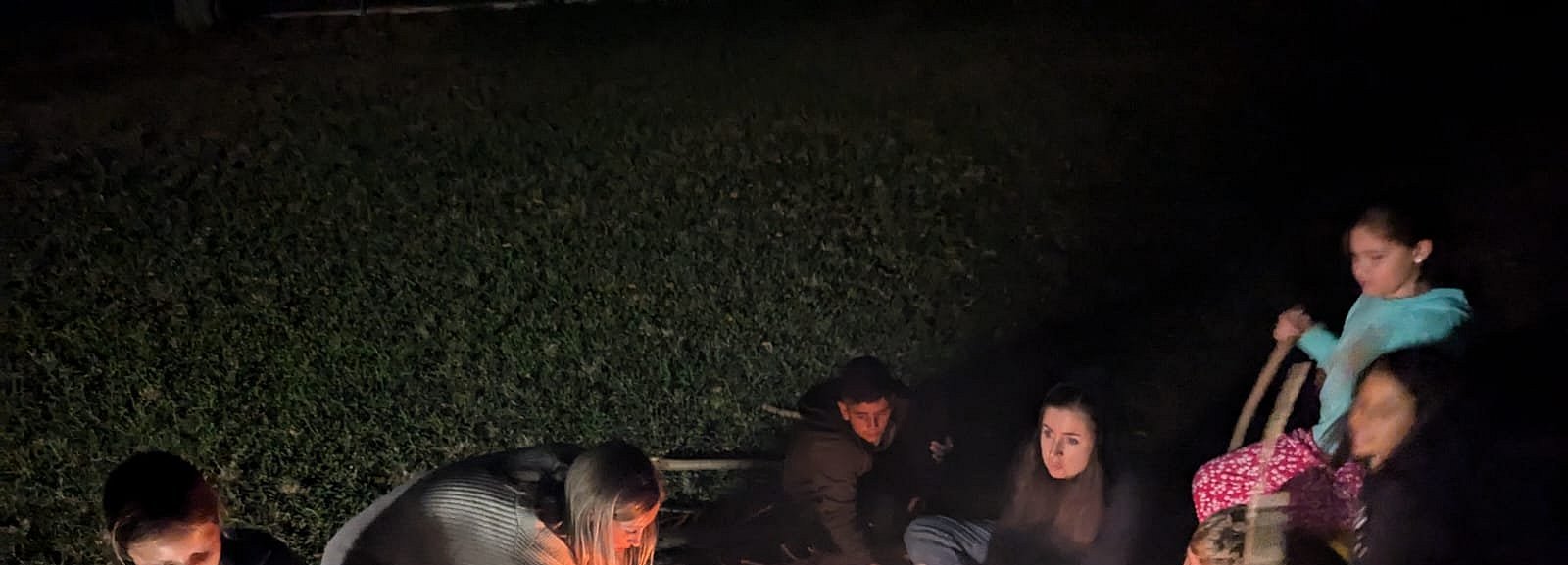 Dort angekommen wartete ein kleines Feuer auf die Minis, über dem Marshmallows und Stockbrot gehalten wurden, um sie dann zu verspeisen. Rund um das Feuer wurden Lieder angestimmt und Geschichten vorgetragen, bevor sich dann die Gruppe auflöste, um ihre Nachtlager aufzusuchen. Die Nacht verlief ruhig – vom Stromausfall in Okriftel hat niemand etwas mitbekommen.