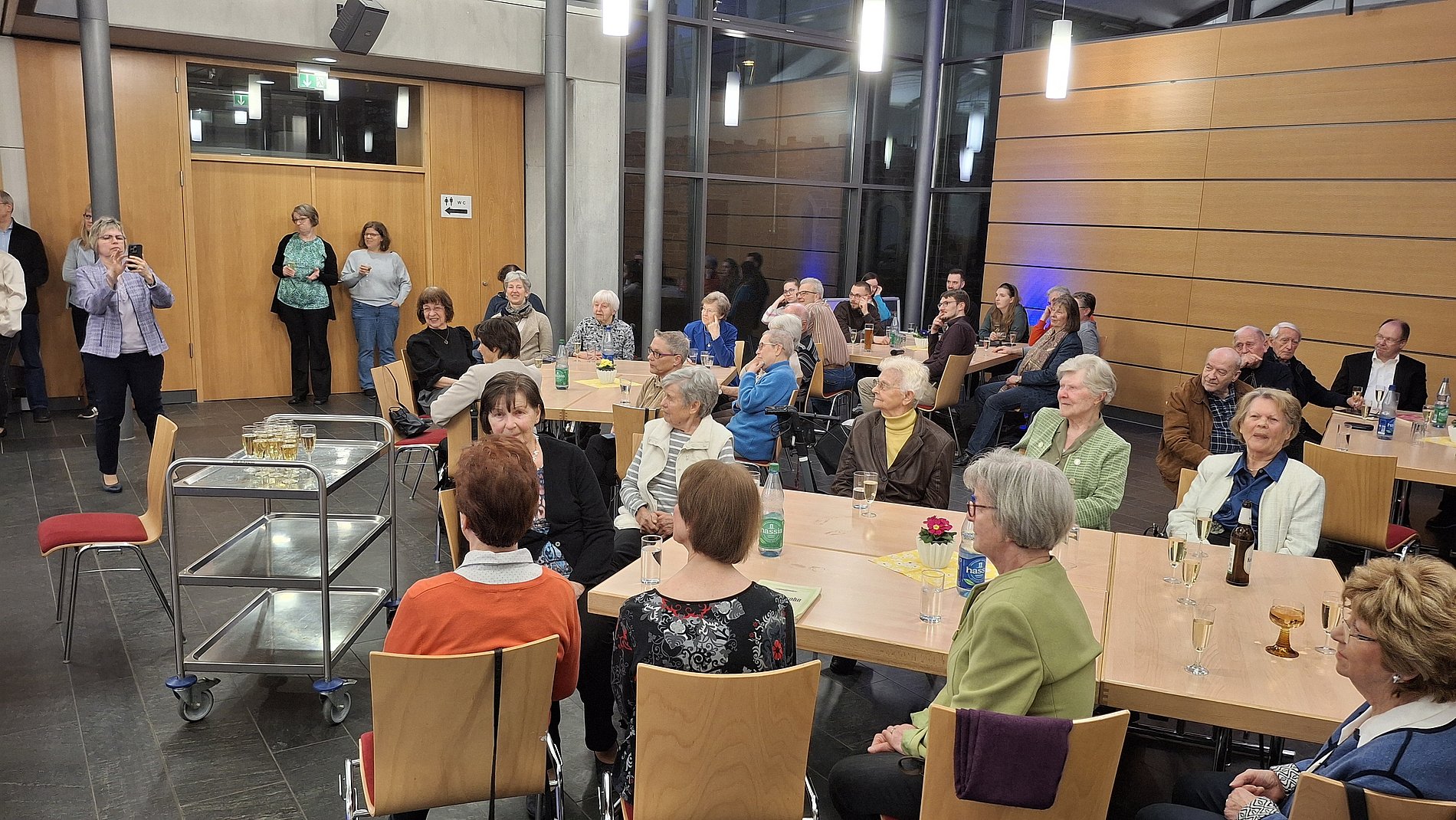 In der letzten Chorprobe wurde aber trotzdem gefeiert. Zum letzten Mal begleitete er den Chor auf dem Klavier. Gesungen wurden nochmals vier Stücke aus dem Oratorium „Elias“ von Felix Mendelssohn Bartholdy, dem ersten Konzert im Jahre 2000, das in der Kirche, unter seiner Regie vom Kirchenchor aufgeführt wurde. Gekommen sind an diesem Abend auch viele ehemalige Sängerinnen und Sänger sowie Mitglieder aus den Kinder- und Jugendchören Vokalino und TonArt, die auch in dieser Zeit unter seiner Leitung gegründet wurden. In seiner Rede bedankte sich der 1. Vorsitzende des Chores, Ulrich Göbel, für die wunderbare Reise durch die Welt der Kirchenmusik, auf die Jens-Uwe Schunk den Chor in all den Jahren mitgenommen hat. Von Stefanie Böhler, 2. Vorsitzende des Chores, wurde als Abschiedsgeschenk ein Fotobuch überreicht, mit Bildern und Geschichten von Gottesdiensten, Konzerten, Chorfahrten und Probewochenenden der letzten 25 Jahre. Darüber hinaus ernannte der Chor ihn aufgrund seiner Verdienste zum Ehrendirigenten.