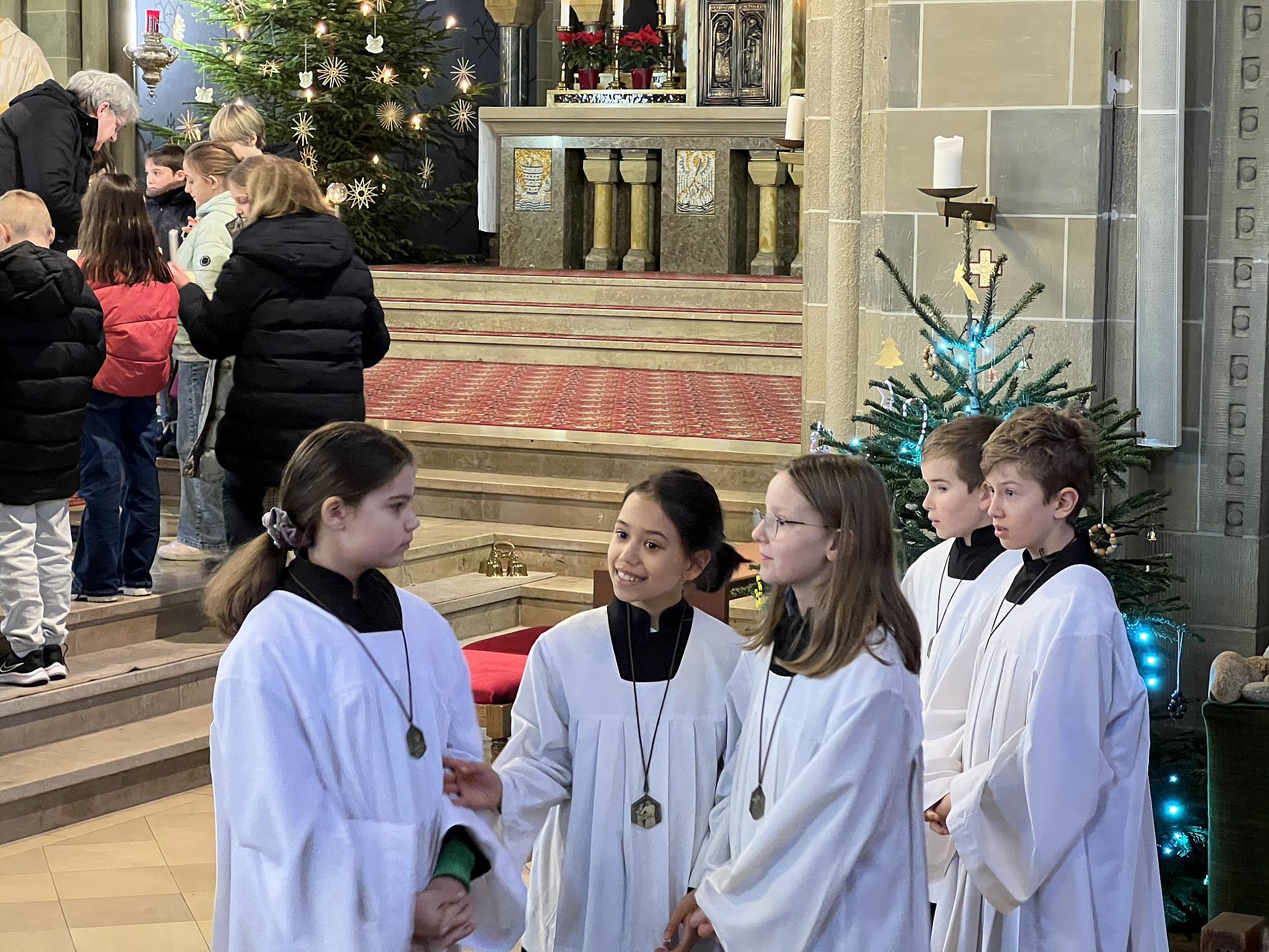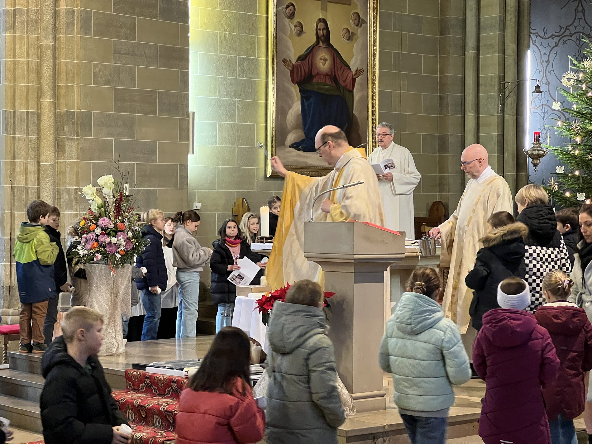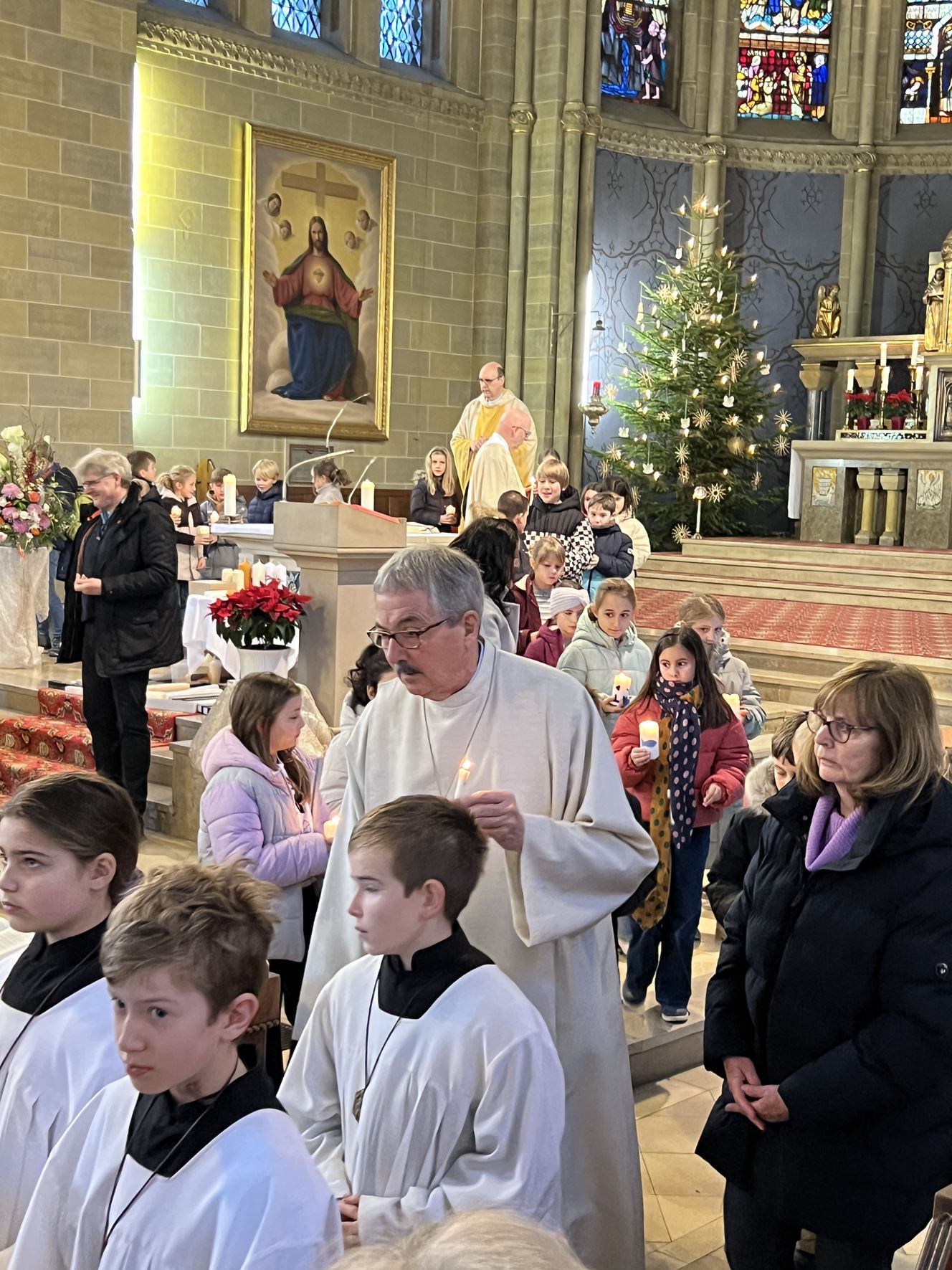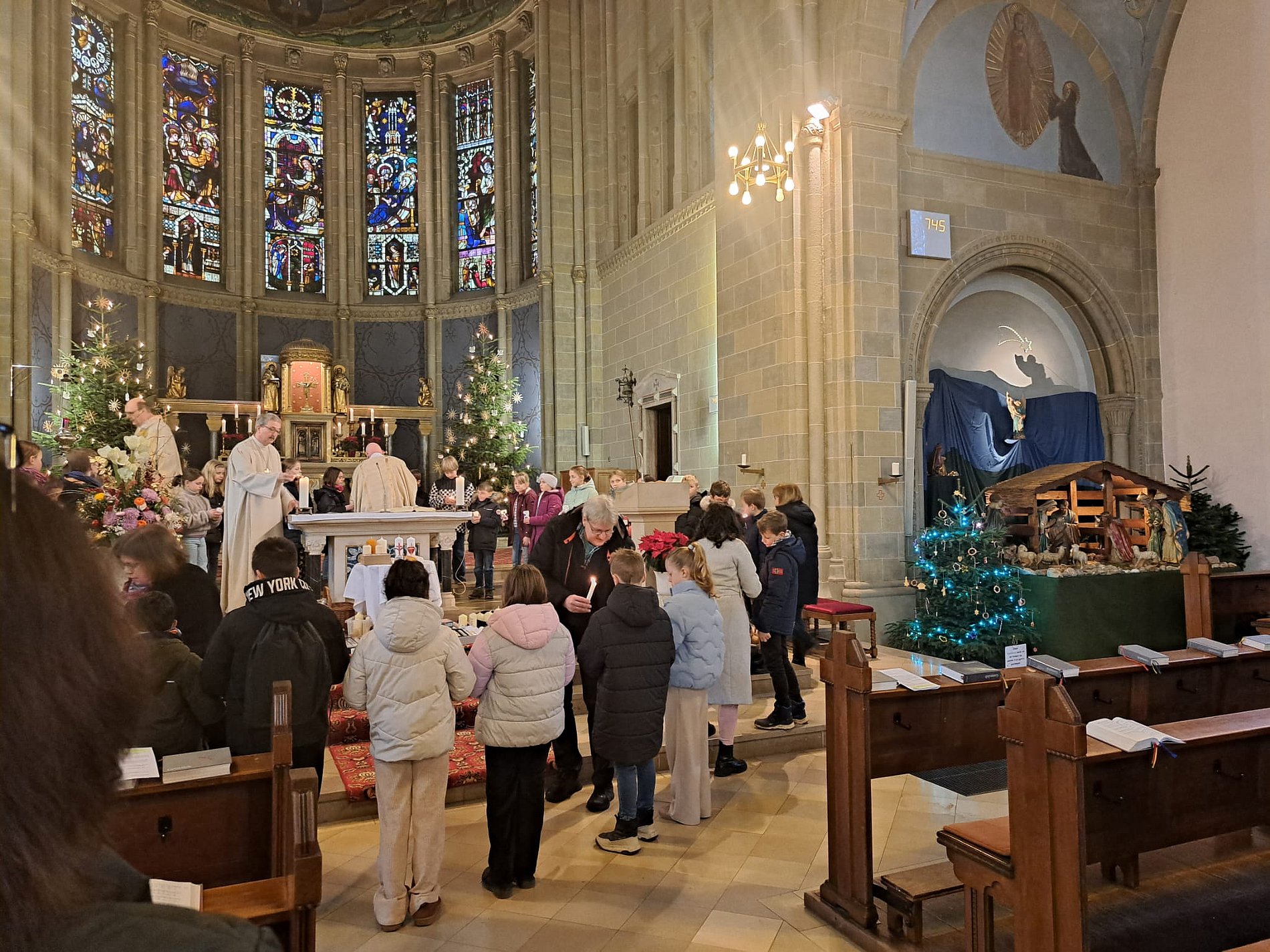 Nach der Stärkung gingen alle in die Kirche, um den Familiengottesdienst an Maria Lichtmess zu feiern, der von den Kommunionkindern mitgestaltet wurde. Im Gottesdienst wurden zunächst die Kerzen geweiht und anschließend zogen alle Kinder in einer Lichterprozession durch die Kirche.