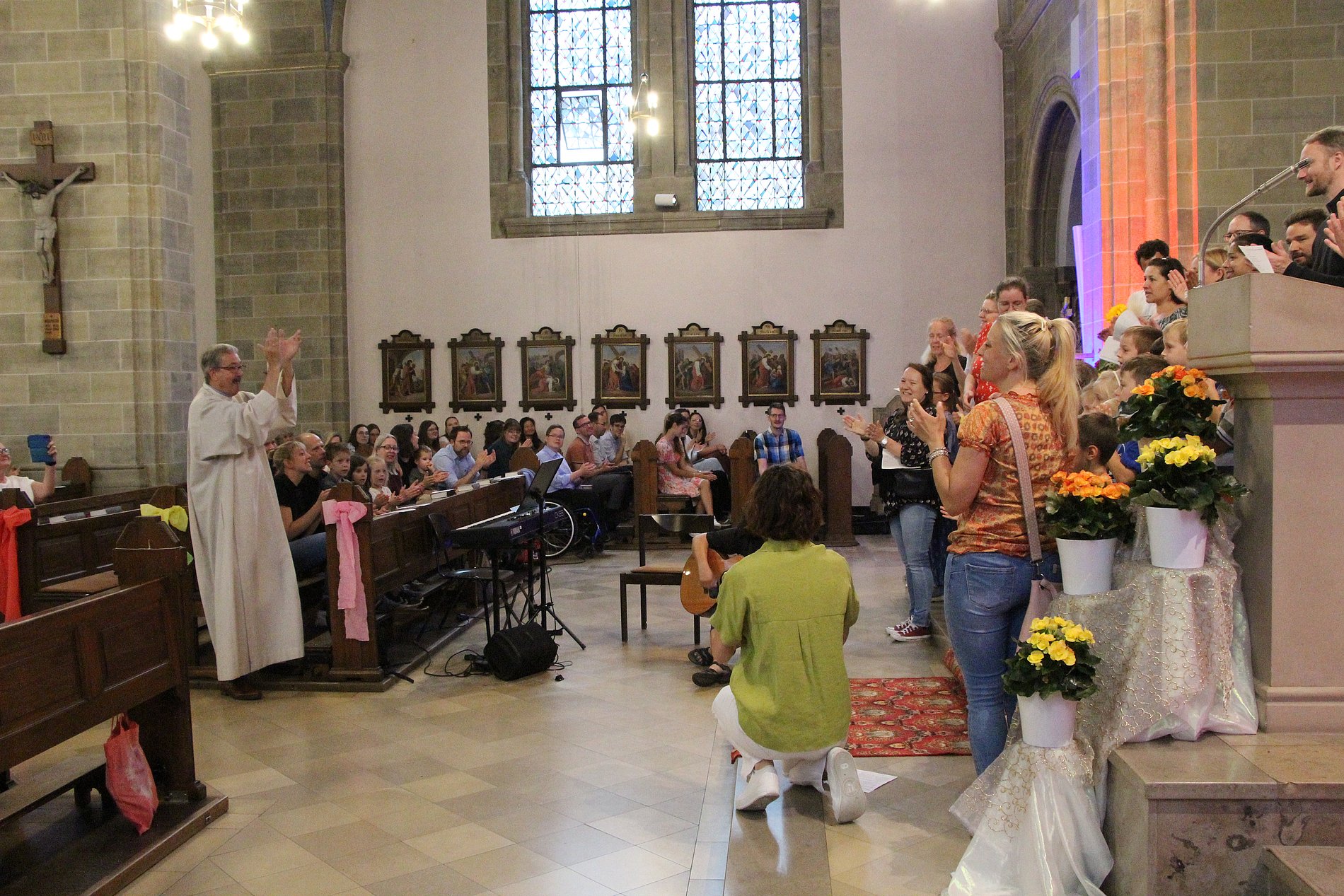 Mit seiner großen Begeisterungsfähigkeit gestaltete er lebendige Gottesdienste. Joachim Kahle kümmerte sich um die Erstkommunion und Firmung. Der Minigottesdienst auf der Picknickdecke, der während Corona begann, war ein voller Erfolg. Viel Zeit verbrachte er auch in den Kindertagesstätten, wo er liebevoll den Kindern Gottes Wort näherbrachte. Dafür bedankten sich Kinder, Erzieherinnen und Eltern der Kita St. Martinus mit dem Lied „Du bist Spitze“.