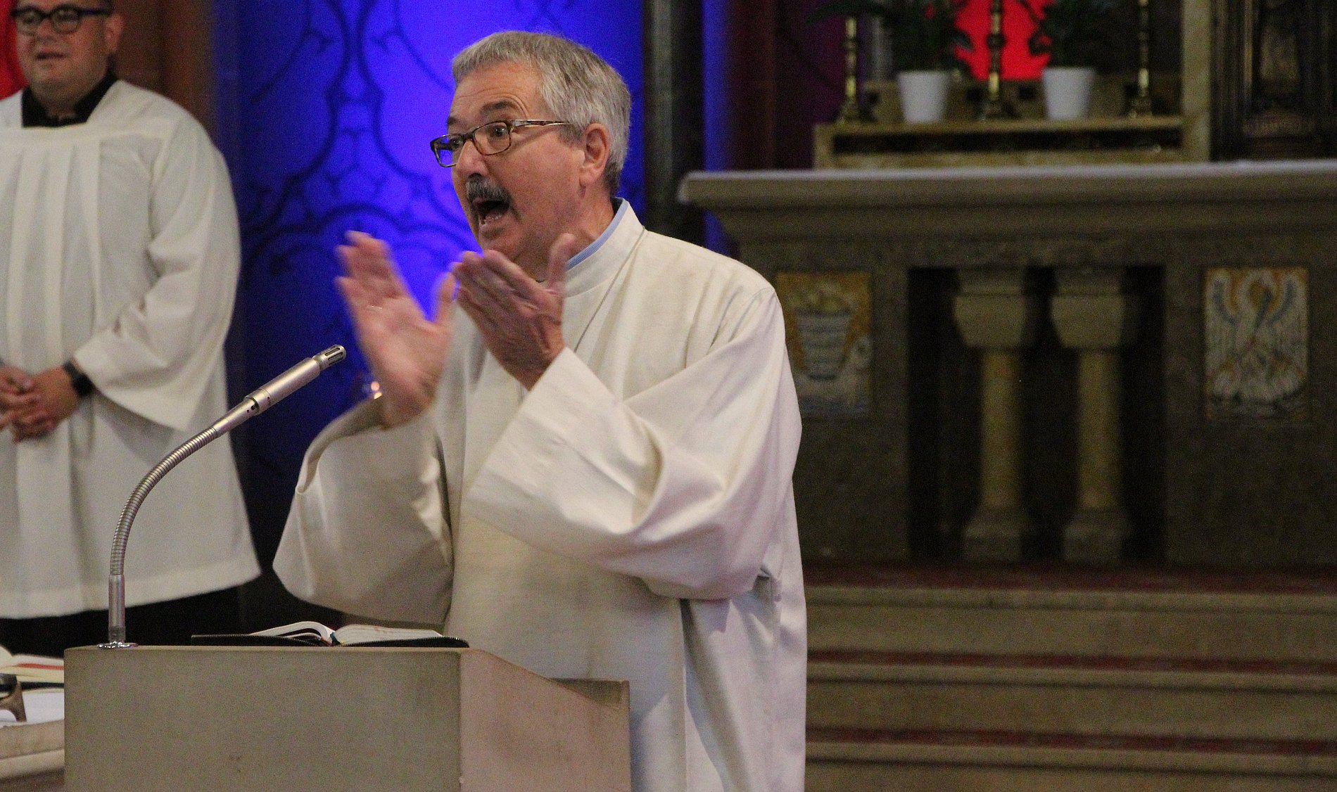 Nach seinem Theologiestudium an der Kath. Hochschule in Mainz wurde er in einem Gottesdienst im Limburger Dom von Bischof Kamphaus ausgesandt. 40 Jahre lang liebte und lebte er seinen Beruf als Gemeindereferent und Seelsorger. Dabei stellte er stets die Menschen, die ihm begegneten und ihren Glauben in das Zentrum seiner Arbeit. „Wir machen es heute wie immer: Wir feiern nicht mich sondern unseren Glauben“, stellt er gleich zu Beginn des Abschiedsgottesdienstes fest.